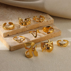 जे एंड डी महिलाओं की 18k pvd स्टेनलेस स्टील गोल्ड प्लेटेड स्टारफिश पशु रिंग ट्रेंडी जियोमेट्रिक ओवा कट