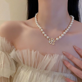 Collana di perle finte con ciondolo a forma di fiore collana di perle 2025 nuova luce di lusso ad alta progettazione con clavicola gioielli regalo per festa